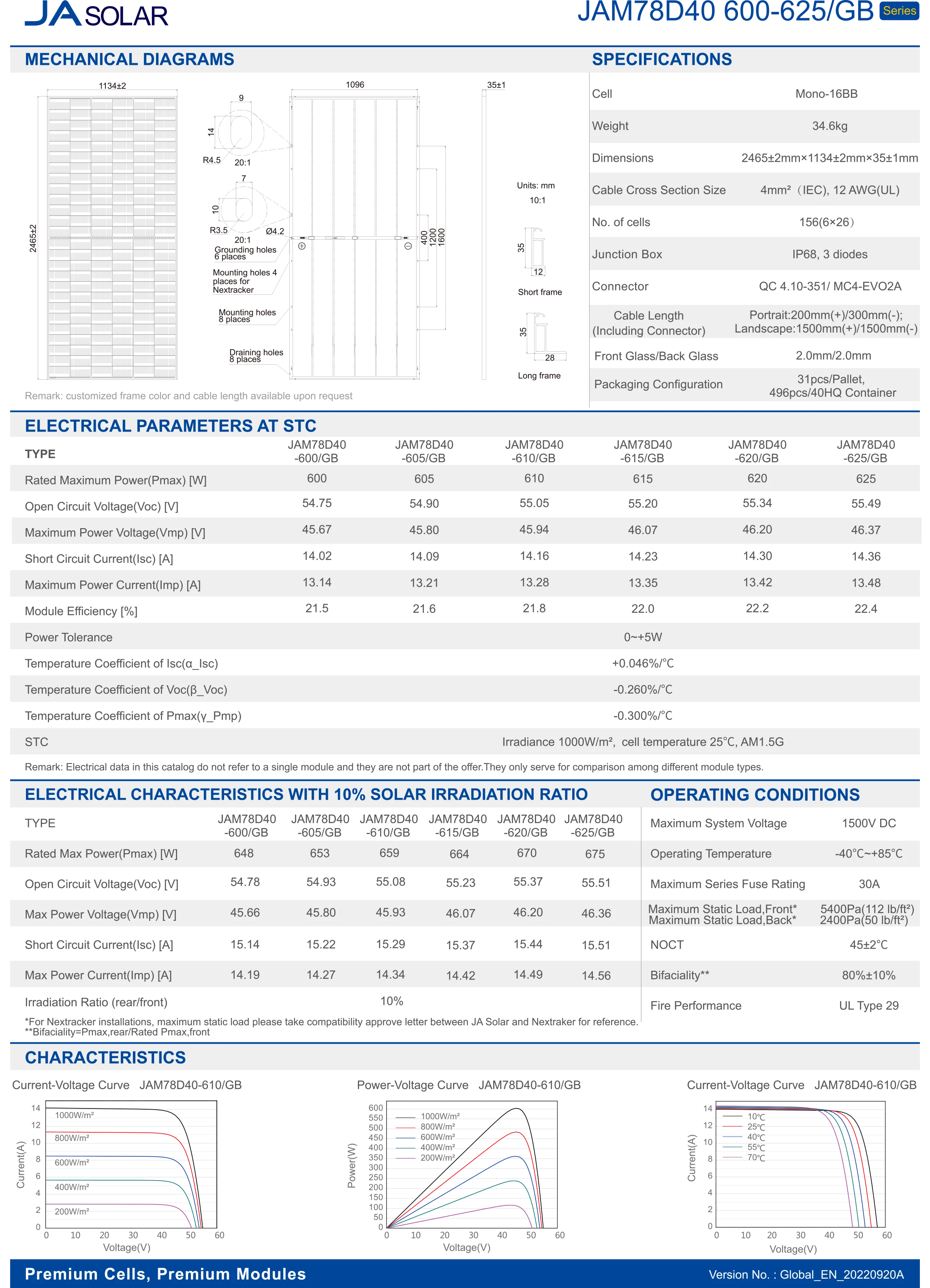 JA Solar Deep Blue 4.0 600W 610W 620W 625W Bifacial Double Glass Modules